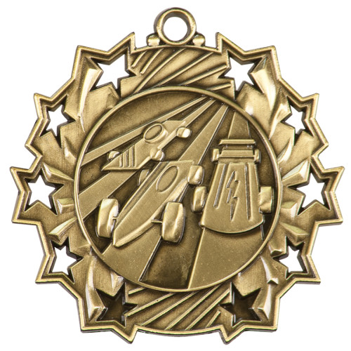 2 1/4 inch Pinewood Derby Ten Star Medal with Neck Ribbon