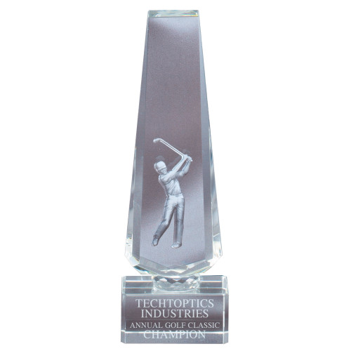 3-D Obelisk Golf Crystal Trophy features: