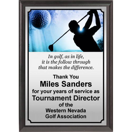 Economy Wall Plaque with silver aluminum heat-transfer plate on a black economy wood plaque