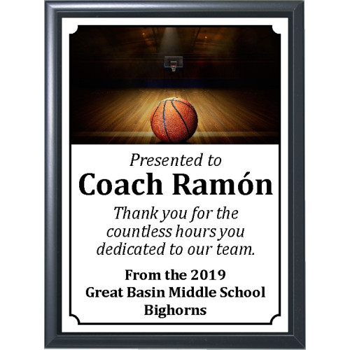 Ball on Dark Court Basketball Plaque