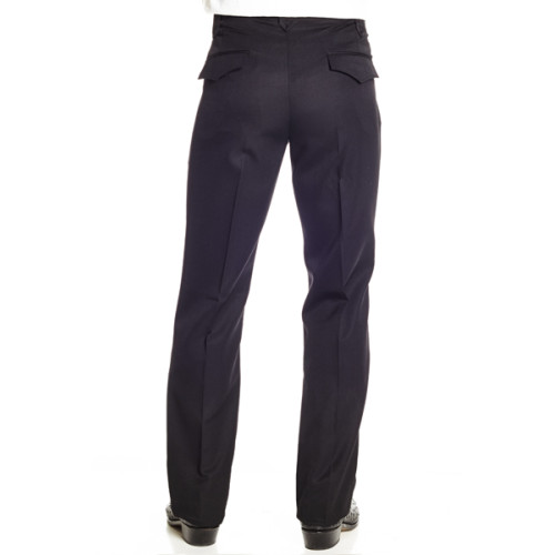 65% polyester - 35% WoolSatin yokesSingle Peak frontDouble peak backInverted pleats with embroidered..
