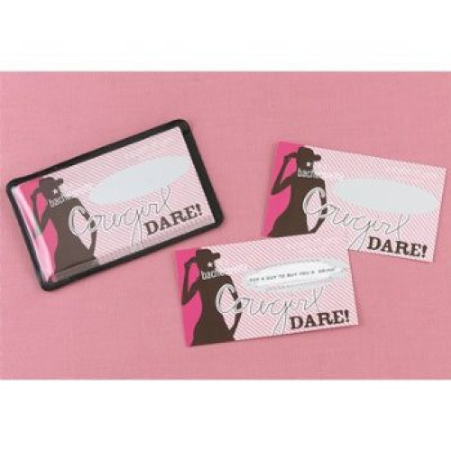 This fun western Bachelorette party game includes 10, colorful "Cowgirl Dare!" cards with spots to scratch-off to reveal the hidden dares.