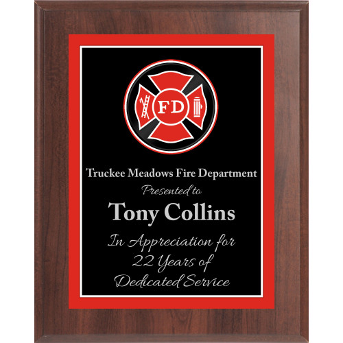 Economy Plaque with engraved Fire Department plate