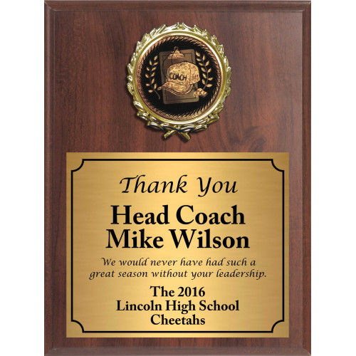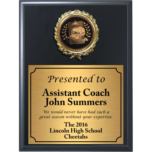 Economy Heat Transfer Coach Plaque with Black and Gold Coach Medallion