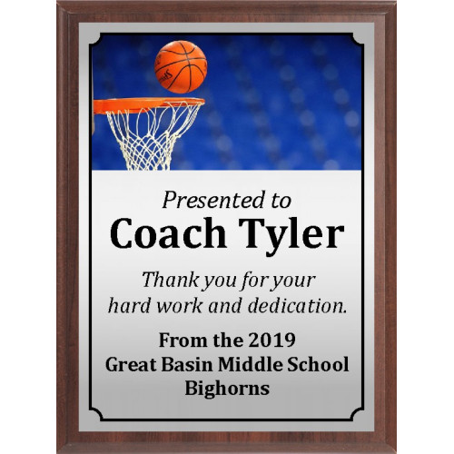 Economy Wall Plaque with silver aluminum heat-transfer plate on an economy wood plaque