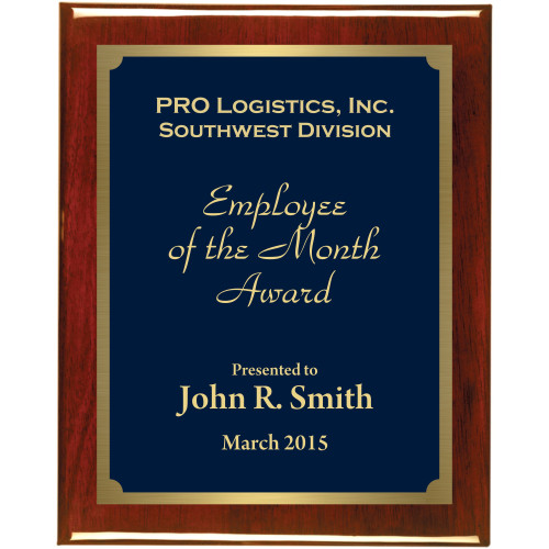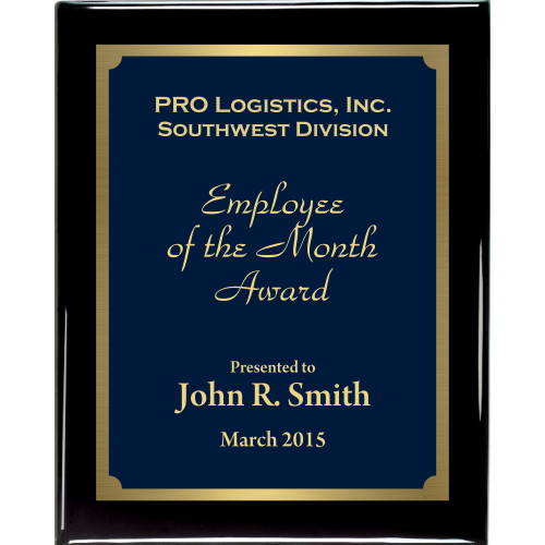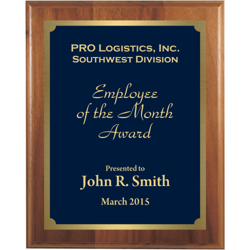 Premium Hardwood Plaque with blue marble texture plate coordinating gold border