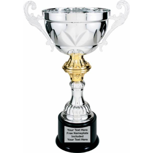 Silver Metal Cup Trophy on Plastic Base, 14 ½"