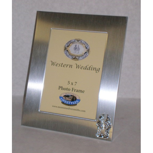 Vertical silver tone picture frame features the "Two Trails Become One Road" design in the lower right corner.
