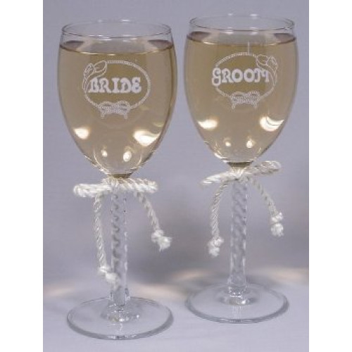This charming western wedding toasting glasses set is adorned with a rope accent.